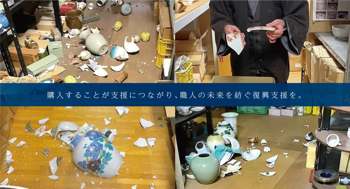 今回、220年以上続く九谷焼の商家として、石川県の伝統工芸を守り、作家さん・職人さんの生活や仕事を守るという使命の元、被災された方々の作品を販売する特設ページをオープンいたします。