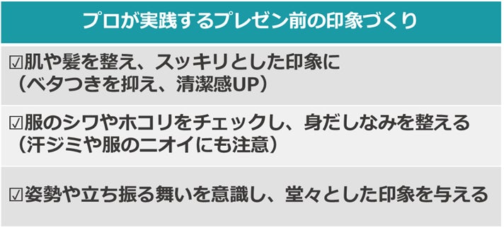 シェラトン ホテルのスタッフへの調査からも分かるように、第一印象を良くするためには「見えない身だしなみ」ケアが欠かせません。これをビジネスシーンに応用することで、好印象を与え、仕事の成果にもつながることが期待できます。これらのポイントを意識して、新年度のビジネスシーンで好印象を手に入れましょう。