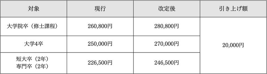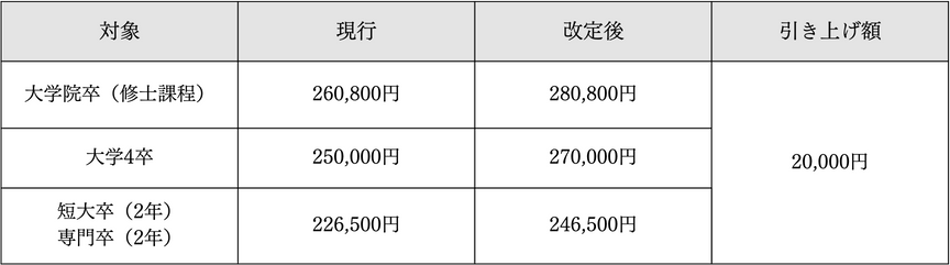初任給については、当社の成長を担う優秀な人材確保に向けた採用力の強化を図るため、従来比2万円引き上げます(諸手当含む)。