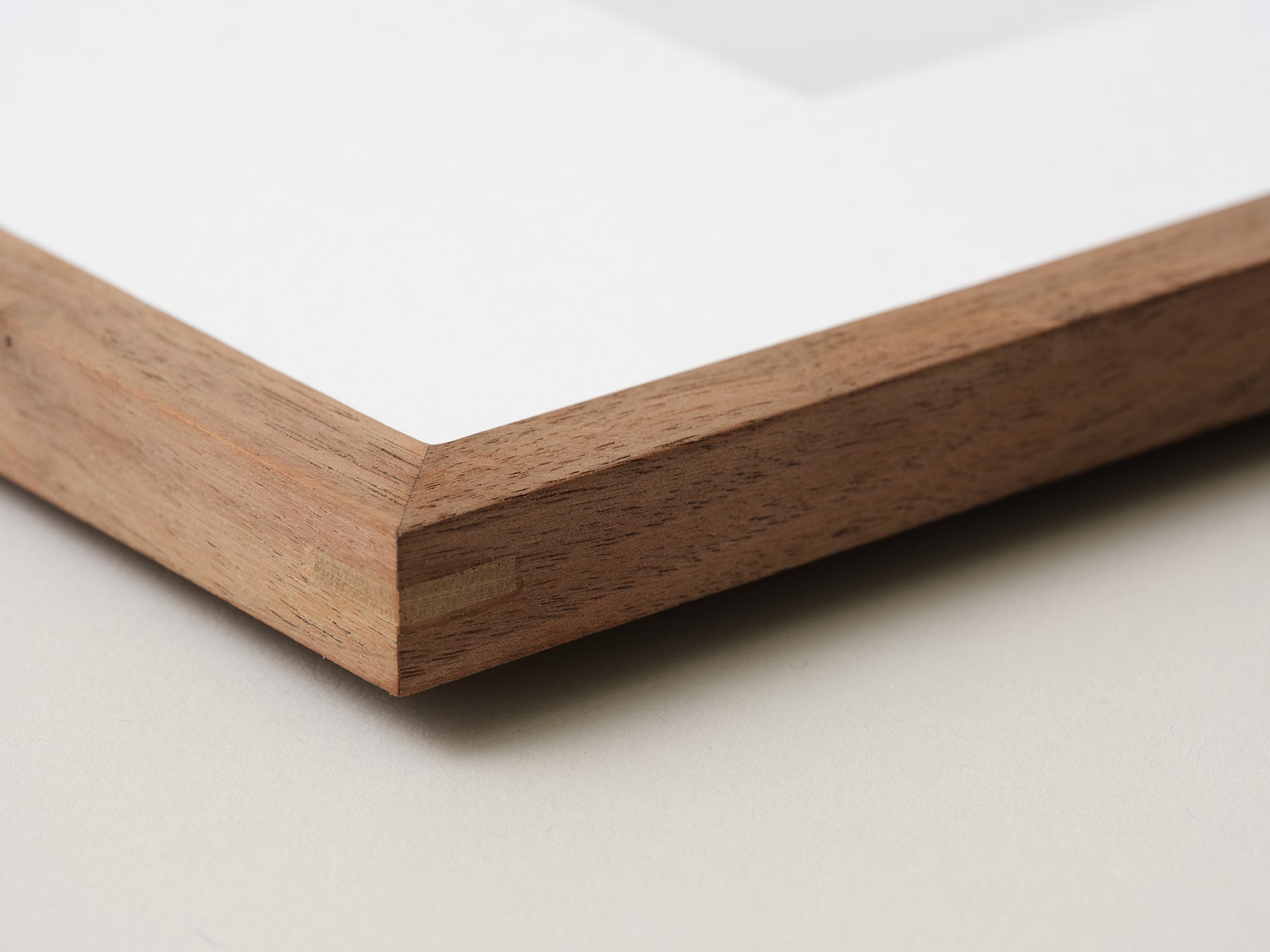 フレームには品質にこだわった天然木ウォールナットを採用。主役の写真を引き立てながら、お部屋のインテリアにも馴染みやすいシンプルなデザインです。スタンドと吊り金具が付属されており、自立させて飾るだけでなく、壁にかけて飾れます。