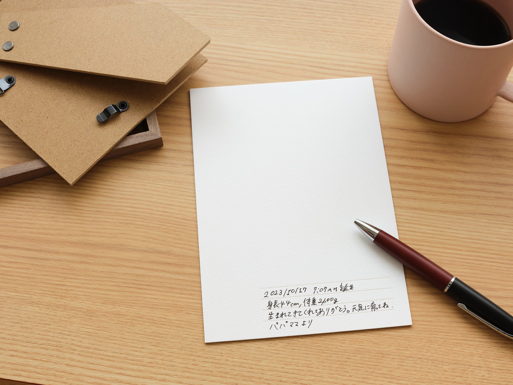 マット台紙はフレームから簡単に取り出すことができ、裏面には文字を書き込むスペースを設けています。写真の日付・場所・出来事やメッセージを綴ることで、写真に込めた想いを記録できます。