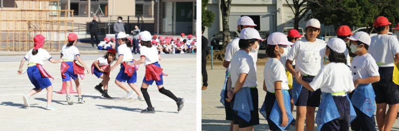 講師から、フラッグフットボールの基本的なルールを学んだ児童たちは、「どうしたら点が取れるか、上手くブロックできるか」をチームで考え、実際のプレイに反映させていました。