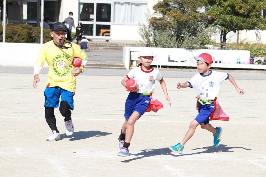 小学生用ボール、フラッグを使用し、フラッグフットボールの授業を開催しました。