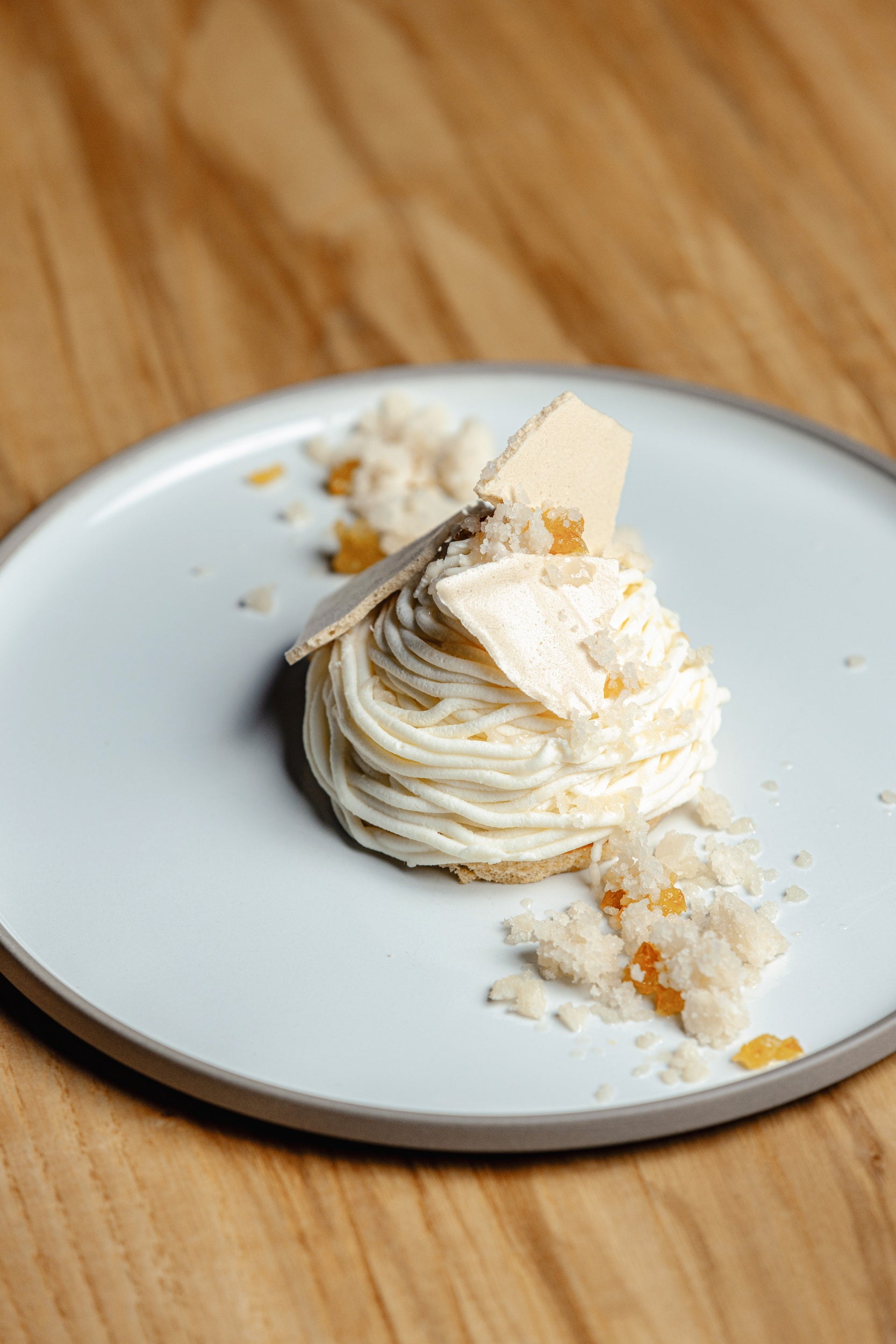 二十四節気に合わせ、2週間ごとにメニューが変わるアフタヌーンティーは「冬至」がテーマに。クリスマスや年末年始などイベントが重なる機会に、体に優しい食材を使ったスイーツとセイボリーで心身を労るアフタヌーンティーです。ダックワーズやタルトタタン、サントノレなど、フランスの伝統菓子ならではのリッチな味わいをグルテンフリーで作りあげました。発酵イチゴや甘酒クリームなどを使い、体のことを考えたウェルネスなアフタヌーンティーです。また、セイボリーには年末の年越しそばをイメージした鴨南蛮そば寿司や、冬至の歳時食であり、「ん」のつくものを食べる七福茶巾などをオンメニュー。日本の食文化に目を向け、ゲストのご健勝を願うアフタヌーンティーです。