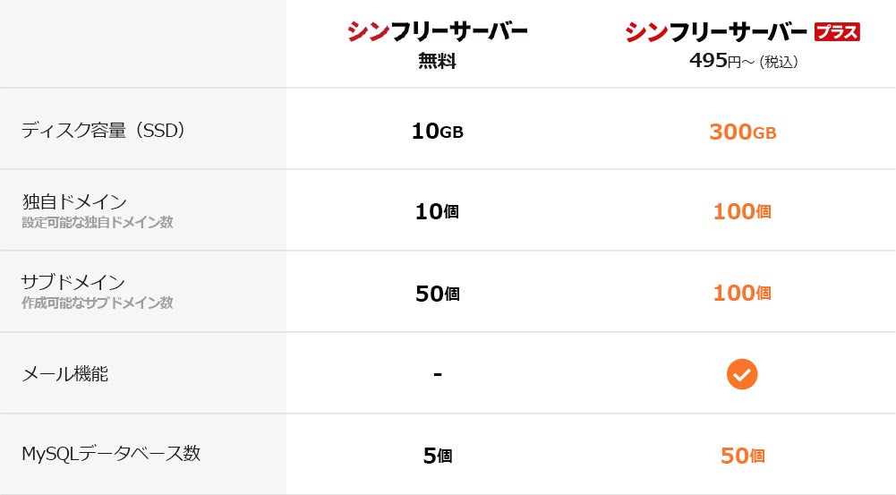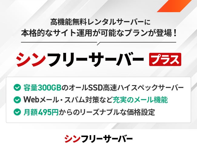 無料レンタルサーバーサービス『シンフリーサーバー』、大容量300GB&メール機能を備えた有料プラン「シンフリーサーバープラス」を提供開始