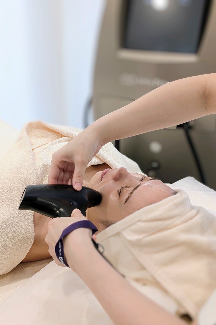 「プライムX」は、高周波(RF)と超音波の2つの機能を兼ね備えた先進的なマシンで、このプライムXの高周波(RF)ハンドピースを使用して皮膚のたるみを引き締める新メニューが『プライムX[美肌RF]』です。