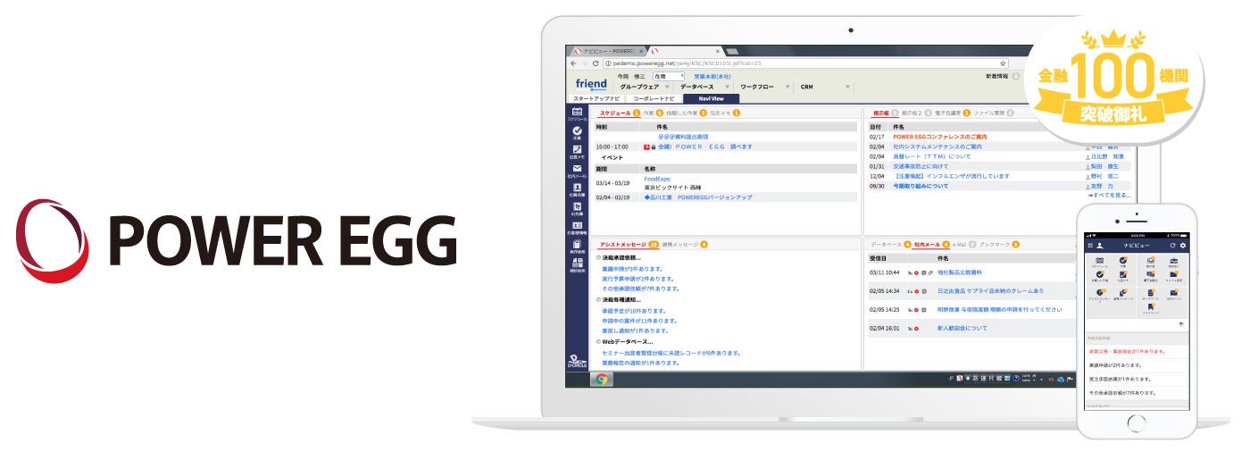 POWER EGGは、「気づき」と「つながり」をコンセプトに、(1)汎⽤申請ワークフロー(2)Webデータベース(3)グループウェアなどの機能を備えた業務のデジタル化ツールです。広い範囲の業務情報を集約することで、テレワーク環境下での業務効率化、社内コミュニケーション活性化を⽀援しています。