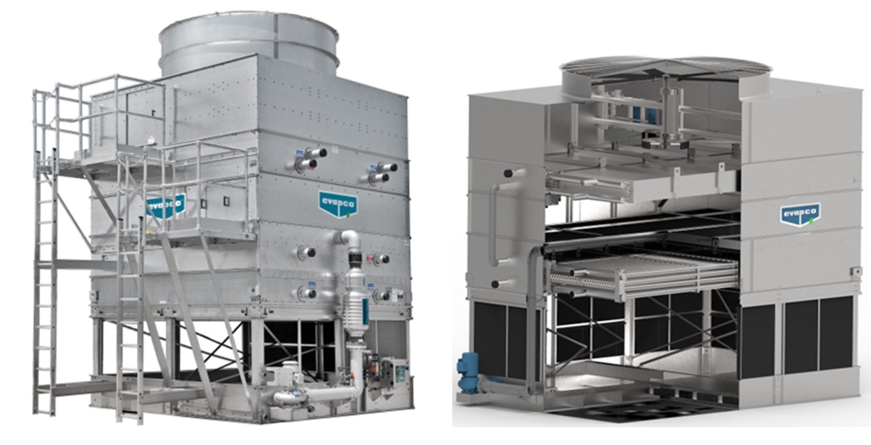熱源機器設置エリアには、当社パートナーのSMARDT社が提供する最新型オイルフリー空冷チラー「AFシリーズ」(2025年以降国内販売開始予定)に加えて、CDUと共にチラーレス液冷空調用商材のコア商材として期待される、Evapco社製のハイブリッドドライクーラー「eco-ATWB-H」を設置する予定です。