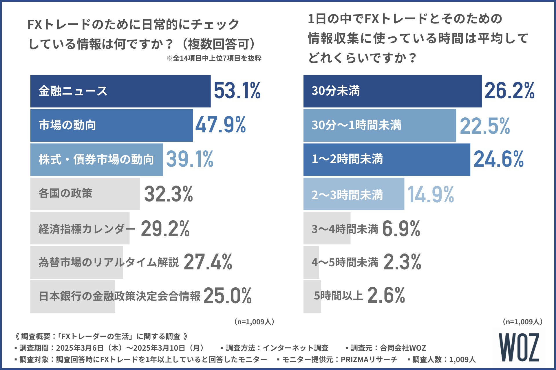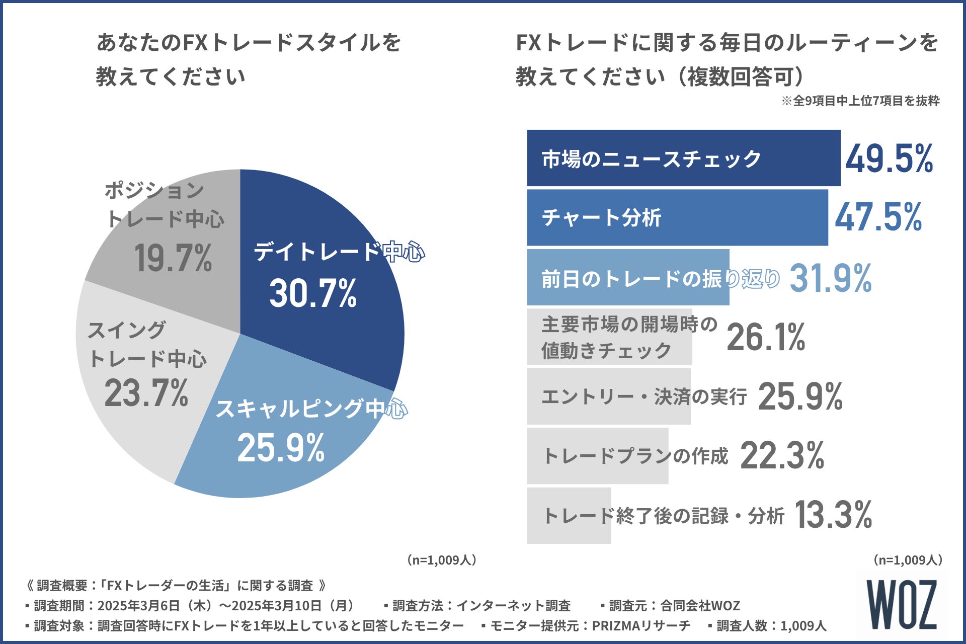 合同会社WOZ(所在地:東京都渋谷区、代表社員:小畑 和彰)は、FXトレードを1年以上している方を対象に、「FXトレーダーの生活」に関する調査を実施しました。