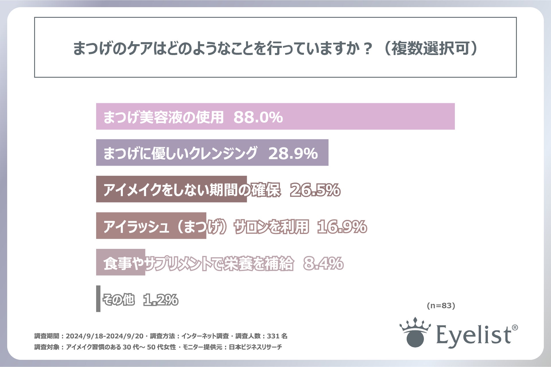この調査から、アイメイク習慣のある女性がまつげに対してどのような意識を持ち、どのようなケアを行っているかが明らかになりました。