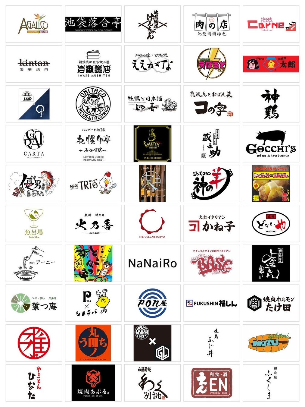 アガリコ オリエンタルビストロ / 池袋落合亭 / 池袋酒場けんちゃん / 池袋肉酒場也 / 池袋肉バルCarne / 池袋焼肉kintan / 岩瀬蒸店 / ええがな / えぼると / お好み鉄板焼金太郎 / DARTS BAR LeaD xおでん まんま / ONI TACO / 牡蠣と日本酒 四喜 / 籠焼鳥とおばん菜 コの字 / 神鶏 池袋 / CARTA池袋店 / 札幌牛亭 西池袋店 / 焼き鳥コクテール / 蔵之助 / ワイン食堂 ゴッチス / 魚と巻き串のお店 優男本館 / 酒処 TRio(トリオ) / 七二八苑カフェ&ダイニング / ジンギスカン神の羊 / じゃがバターは飲み物。 / 寿司Bar魚呂場 / 炭薪 焼き鳥 火乃香 / THE CELLAR TOKYO / 大衆イタリアン かね子 / 元祖どないや 池袋店 / 立呑みアーニー / とこなつ家 / NaNaiRo / Natural Wine BASE - kotobuki- / 博多串焼きよかろうもん / 旬菜と郷土 葉つ庵 / P144×シトラバ / PON屋 / 福しん / ホルモンたけ田 / 鉄板もつ鍋まさや / 丸ノうち / 盛蔵✖️GL / 焼鳥 ふじ井 / 焼鳥MOZU / やきとんひなた / 焼肉あぶる。池袋店 / 和酒酔処わく / 和食•酒 えん / 和食屋ふくしま(五十音順)