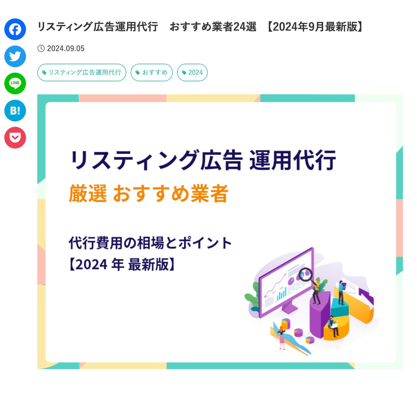「リスティング広告運用代行 おすすめ業者22選【2024年9月最新版】」記事はこちらからご覧いただけます