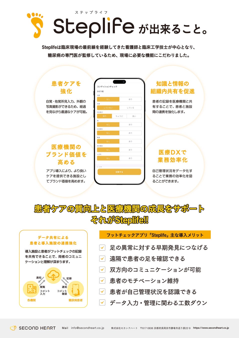 今回の資金調達により、主力製品であるクラウド型フットチェックアプリ「Steplife」の機能拡張と、新たな製品開発を加速させることが可能となりました。より早期の足病変発見と治療開始を実現し、重症化予防に大きく貢献します。
