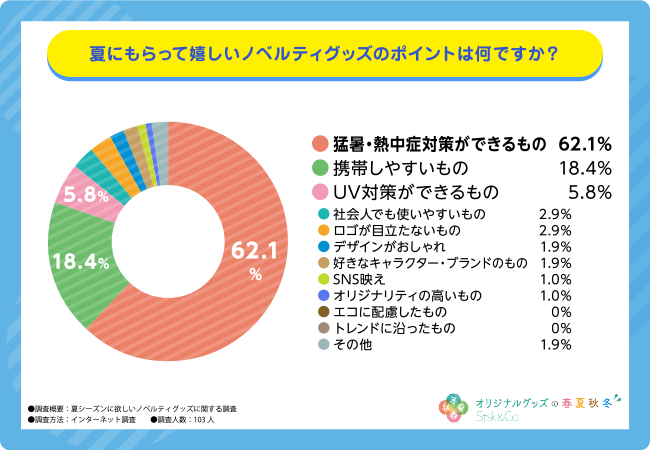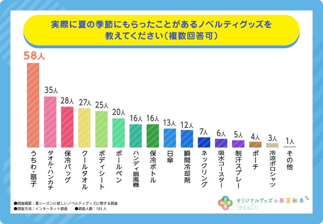 そこで今回、オリジナルグッズの春夏秋冬(株式会社秋冬春夏https://www.s-t-s-k.com/)は、全国20〜60代の男女103名を対象に「夏シーズンに欲しいノベルティグッズ」に関する調査を実施しました。