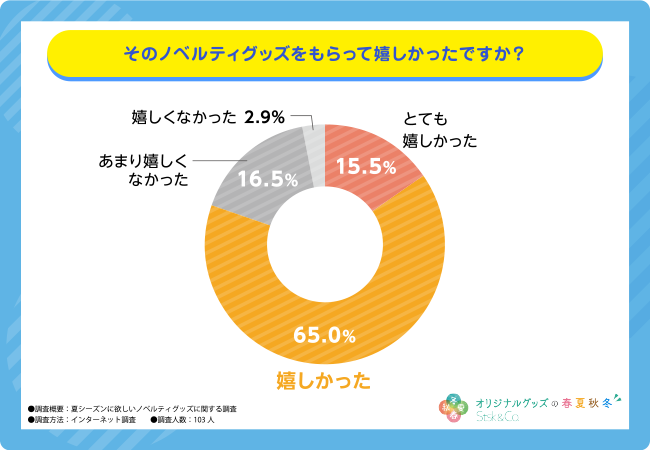 調査結果から夏のノベルティグッズをもらった人の80.5%が「とても嬉しかった」または「嬉しかった」と感じていることがわかりました。