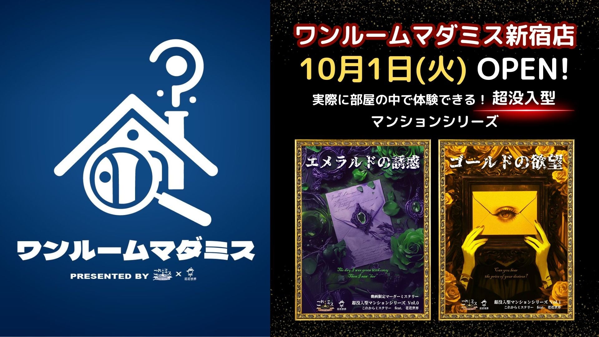 マーダーミステリーの事業を展開する株式会社これからミステリー(本社:東京都渋谷区、代表取締役:飯田祐基、以下「これからミステリー」)は、超没入型マーダーミステリー店舗を運営する花花世界(東京都台東区東上野、共同代表:佐藤翔太)とのコラボレーションにより、超没入型マンション型マーダーミステリー専門店「ワンルームマダミス新宿店」を2024年10月1日(火)にオープンいたします。