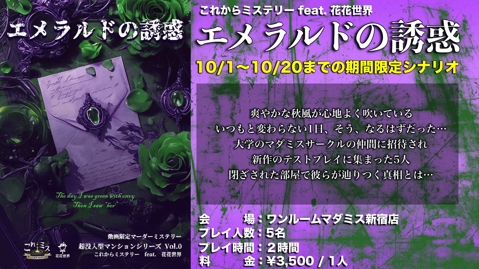 10月中旬にこれからミステリーの YouTubeチャンネルにて、 配信されるシナリオとなりますので本作品を体験できるのは、 10月20日までとなっております。