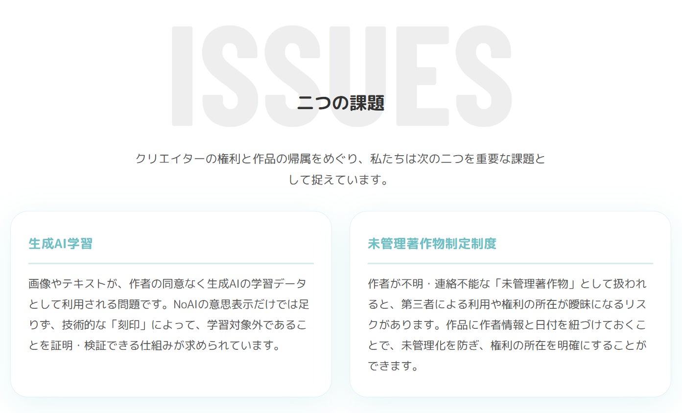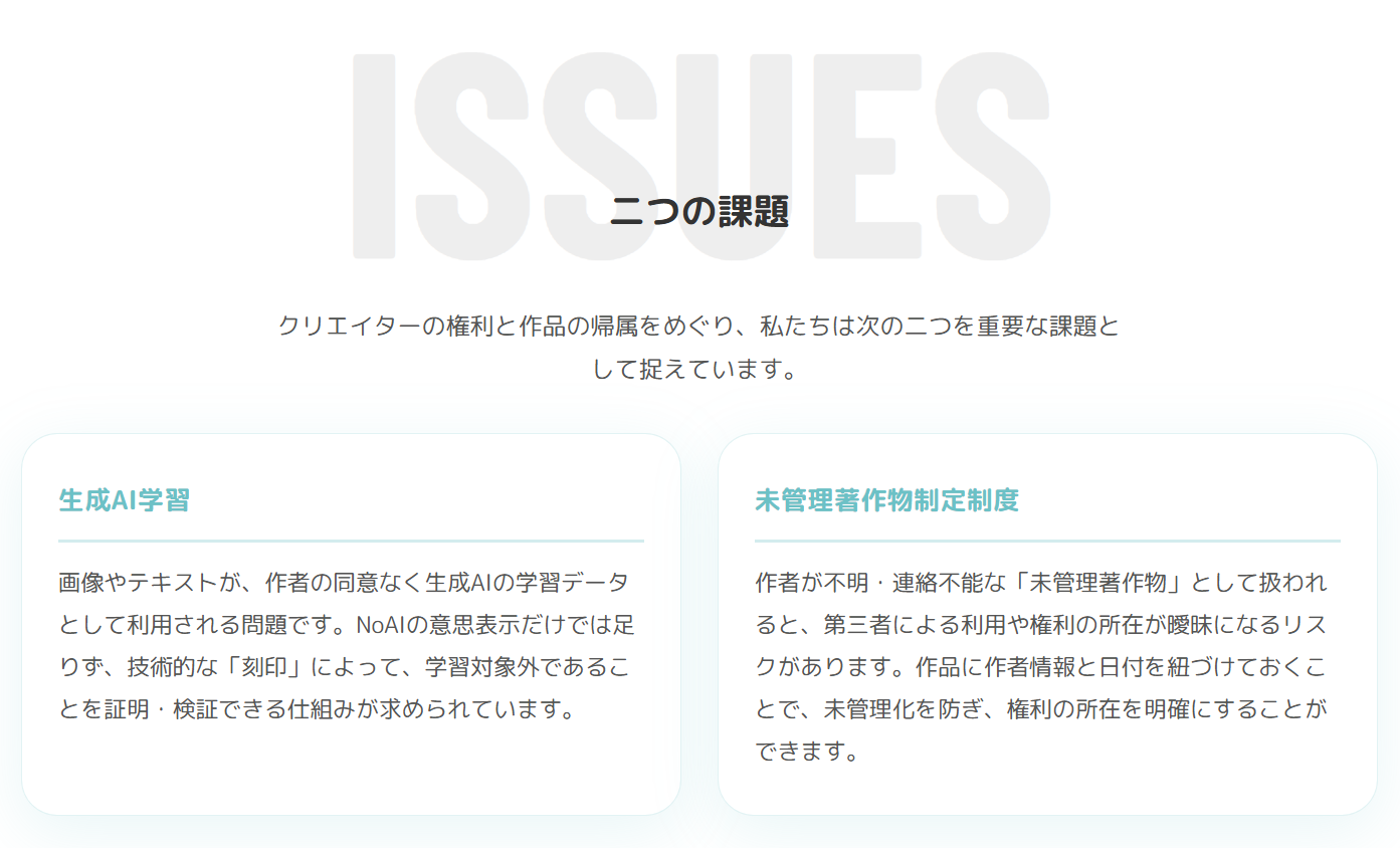 EUではAI Actが施行され、米国ではAI著作権訴訟が相次ぎ、各国でクリエイターの権利保護に関する法整備が加速しています。「投稿するだけで権利記録が残るSNS」という仕組みは、日本国内にとどまる課題ではありません。
