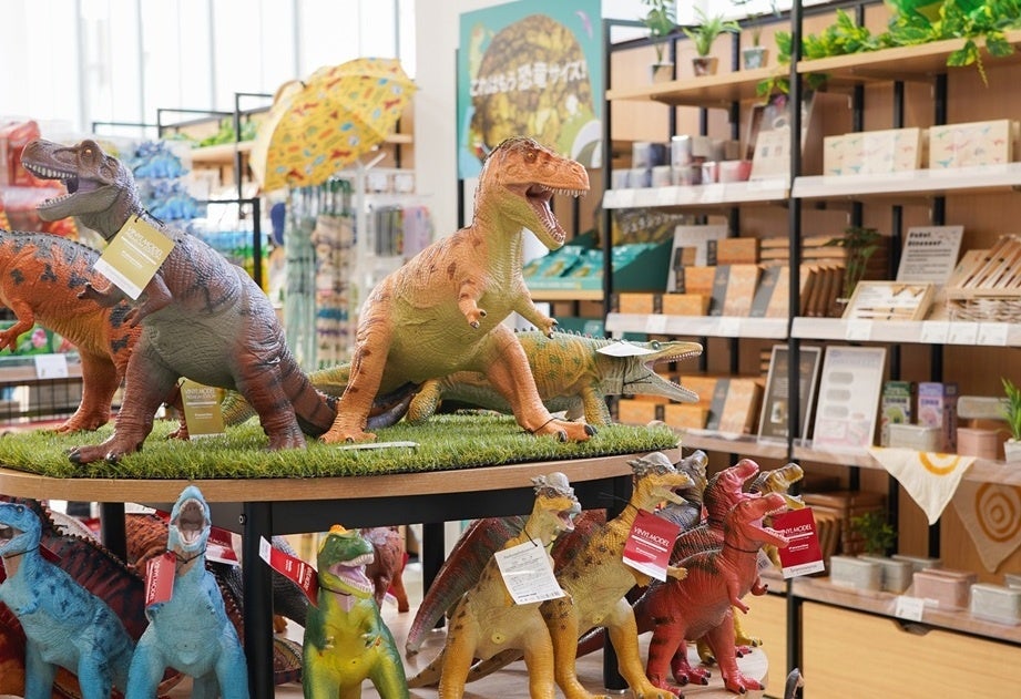 店内には、恐竜モチーフにした雑貨、お菓子、文具、アパレルなど、子どもから大人まで幅広い世代が楽しめる恐竜グッズを多数ラインアップします。かわいらしいキャラクター商品から本格的な恐竜モチーフのアイテムまで、思わず手に取りたくなる商品を取り揃え、恐竜好きはもちろん、観光で訪れた方やファミリー層にも気軽に楽しんでいただける売場づくりを目指します!