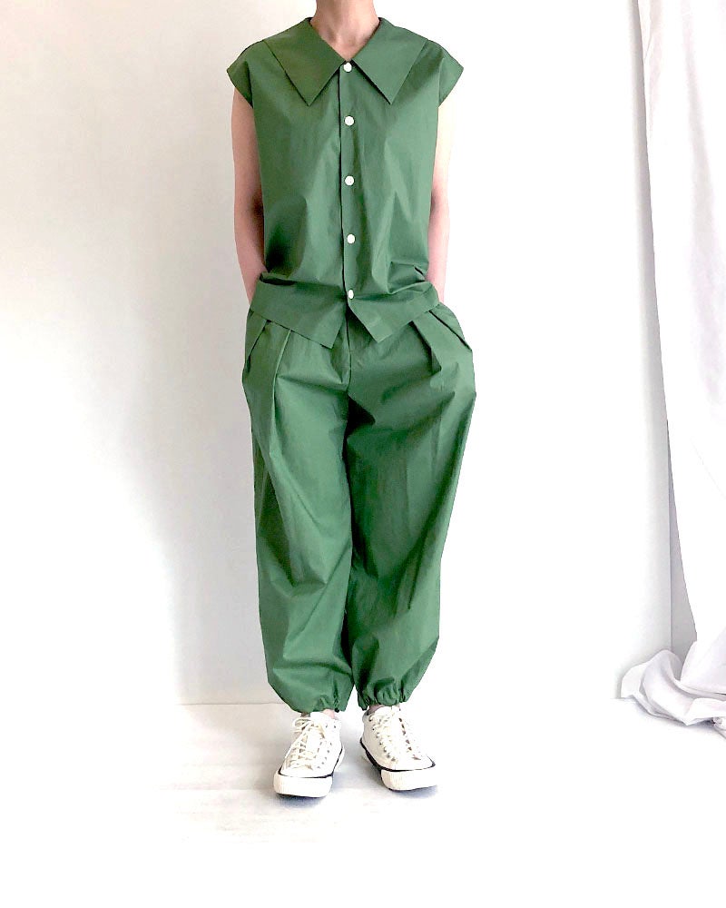 HAKAMA-POPLIN タックイージーパンツ Green