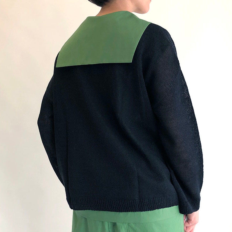特徴的な衿は、上に1枚重ねることで一層映えるチャームポイントに。