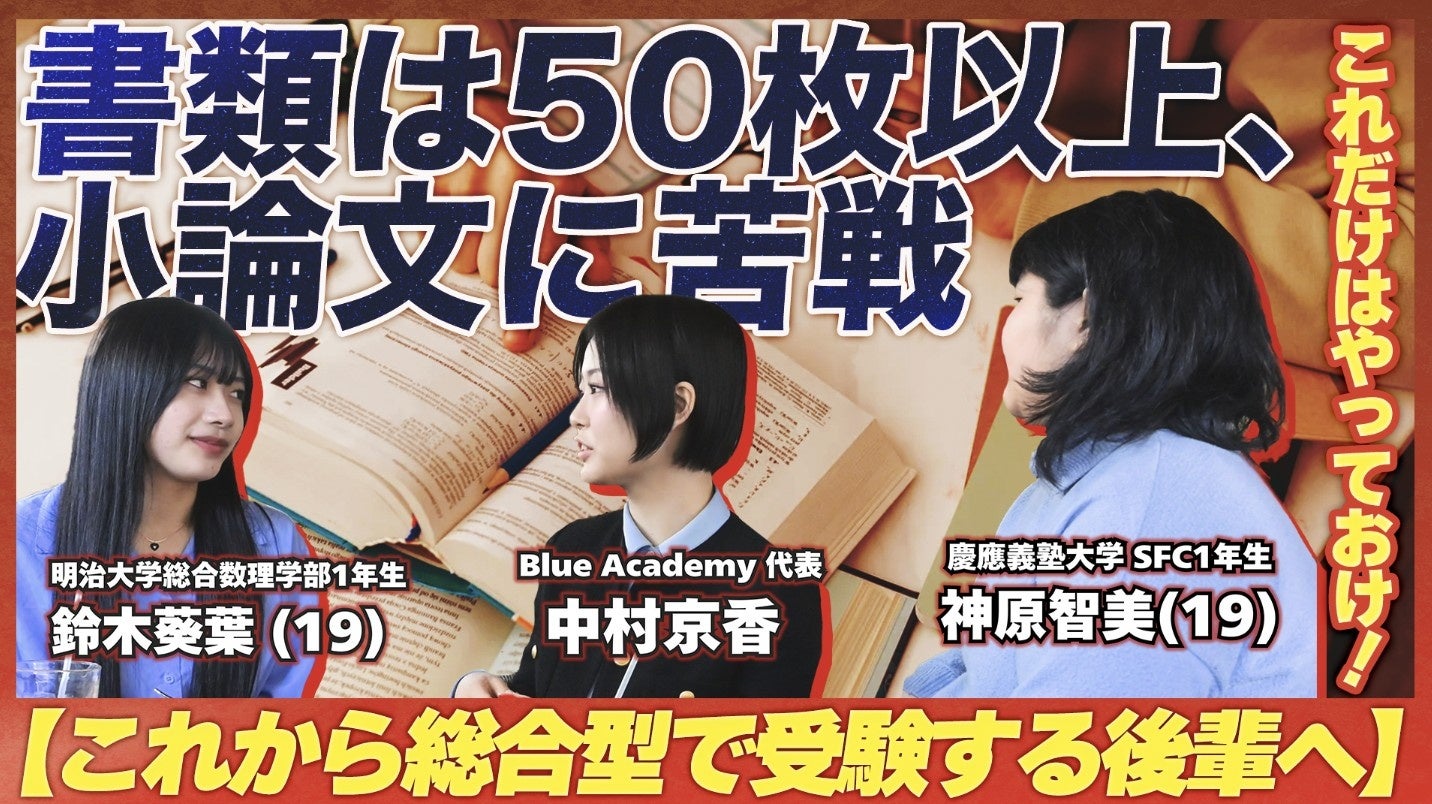 総合型選抜や推薦入試に特化した予備校「Blue Academy/ブルーアカデミー」(運営:CLEA.株式会社、代表取締役:中村京香)は、総合型選抜受験に挑む高校生や保護者の皆さまに向けて、新たな情報発信の場として公式YouTubeチャンネルを開設しました。本チャンネルでは、合格に向けた実践的な戦略や卒塾生のリアルな体験談を紹介するとともに、総合型選抜をとりまく学習塾業界の現状や課題についても鋭く切り込みます。