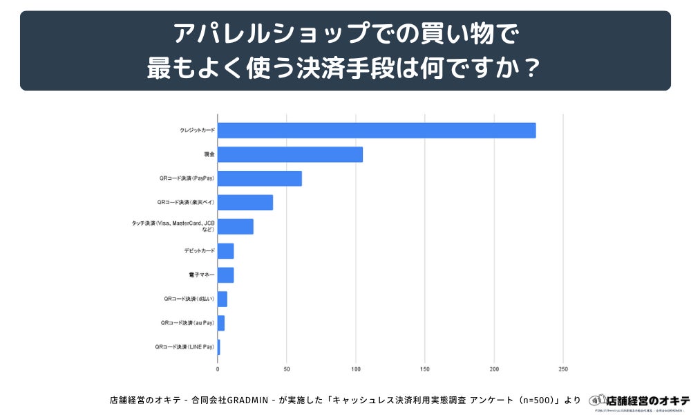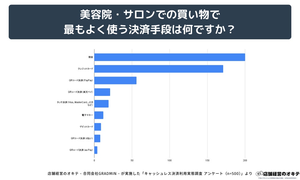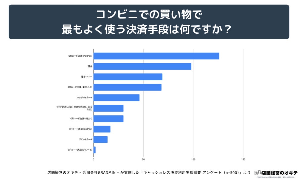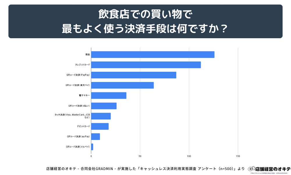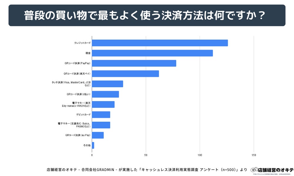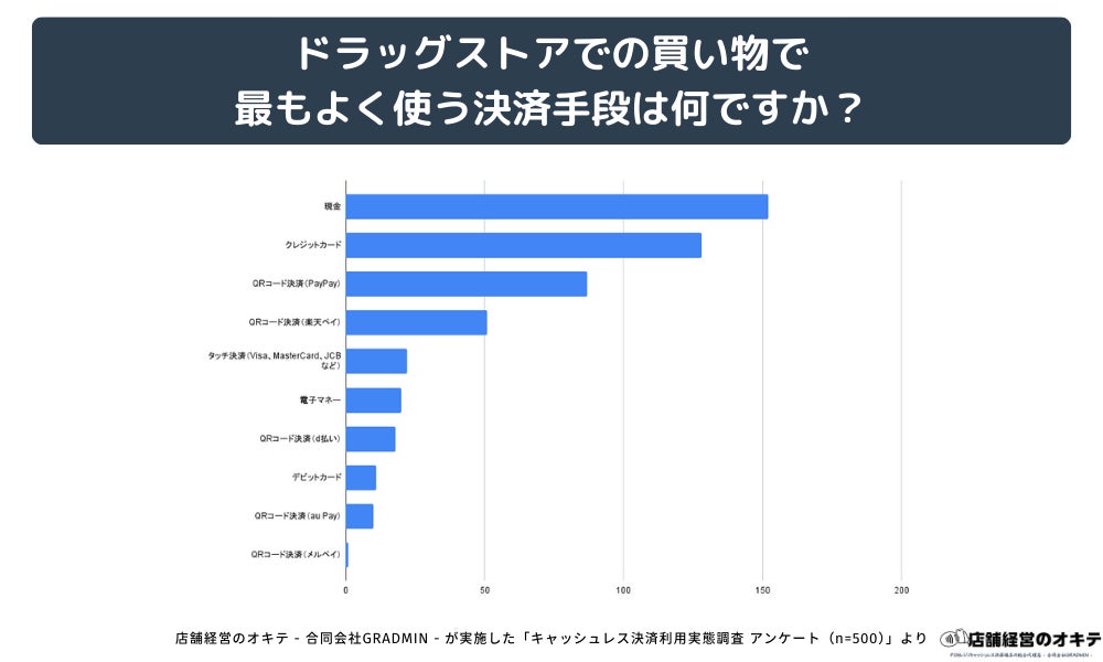 合同会社GRADMIN(代表:後藤 廉)が提供するオウンドメディア「店舗経営のオキテ(https://tenpo-okite.com/)」は、全国の男女500名を対象に、「キャッシュレス決済の利用実態」に関する独自調査を実施しました。その結果、買い物をする場所によって利用される決済手段に明確な違いがあることが判明しました。