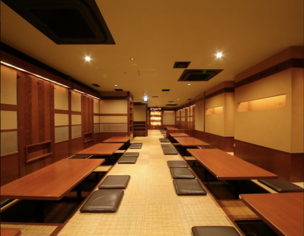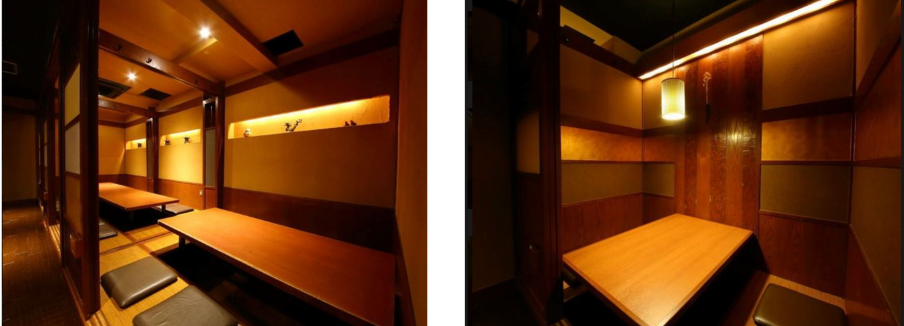 周りを気にせずゆっくりお食事を楽しめる個室・半個室席を完備。2名様〜からの少人数や30名様〜の飲み会や接待などにお使いいただけます。また、最大80名様までご利用頂ける座敷掘りごたつ席もございます。大規模の宴会や歓送迎会、様々なシーンにご利用ください。