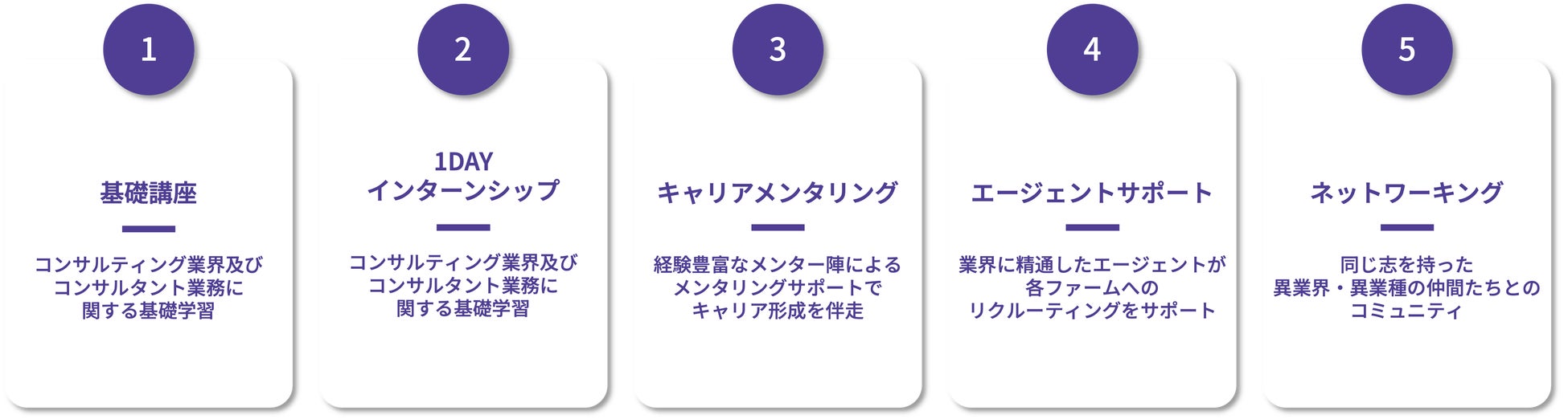 一方で、コンサルティング業界で活躍できる可能性を持っているにも関わらず、その能力に気がつけていない、潜在的な能力を持っている人材に向けて、さらなる活躍の場・機会を提供するために、閉ざされているコンサルティング業界をよりオープンに、見える化する必要を感じていました。そういった想いを持つ中で、業界及び業務内容をより分かりやすく知ってもらい、自らに適したリスキリングの機会・活躍の機会を提供する場として「CONSULTING ACADEMY」を構想いたしました。