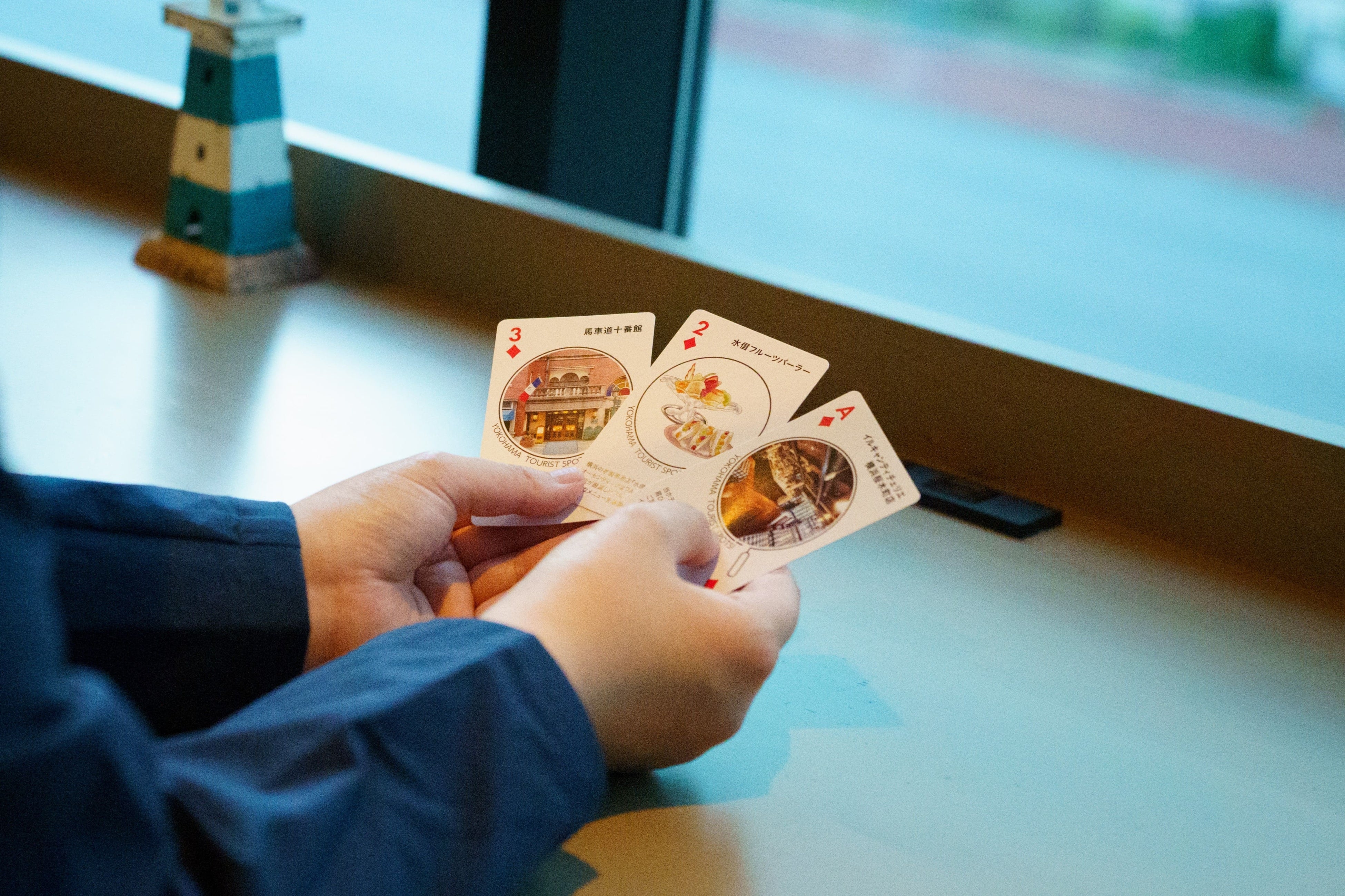 カード片手に思わず出かけたくなる、旅の思い出にお持ち帰りも可能なトランプ型スポット紹介カード。