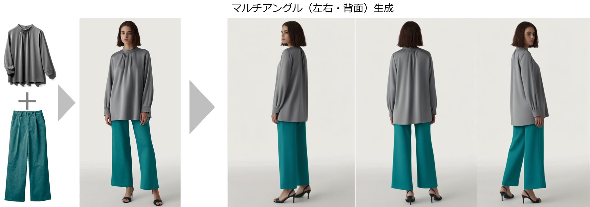 ・既存機能「マルチアングル生成」や「顔変更」との組み合わせが可能です。