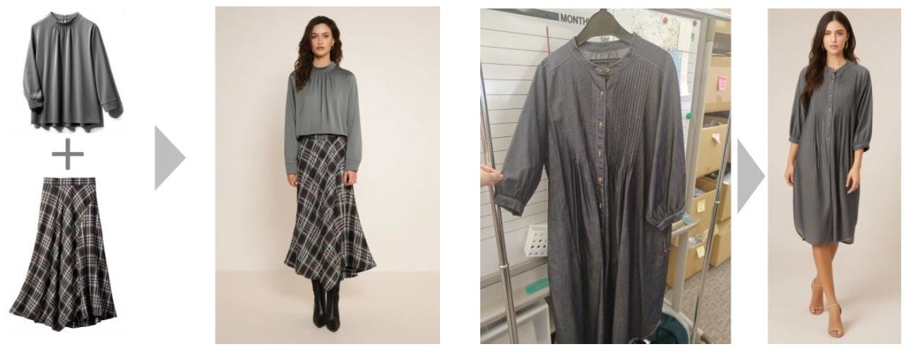 モデル着用画像が数分で生成されるため、従来要する撮影時間と撮影関連費を削減できる。