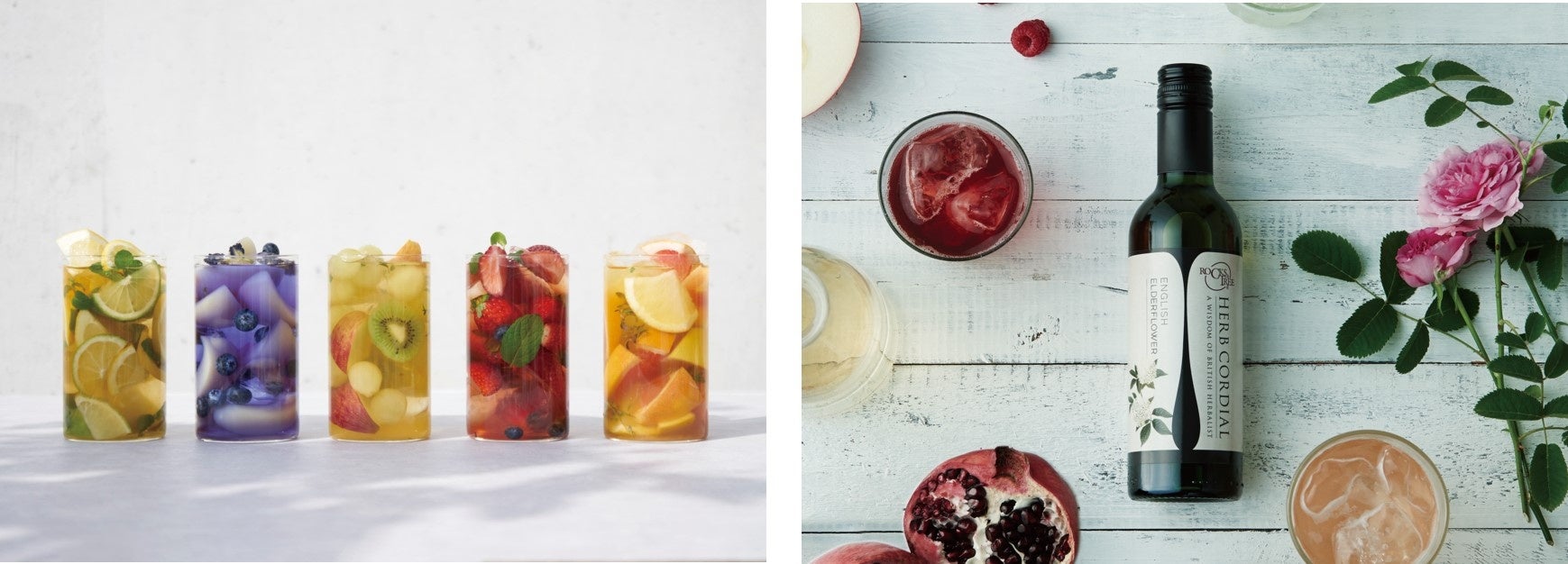 冷たい紅茶やオレンジジュース、ハーブコーディアルを加えても