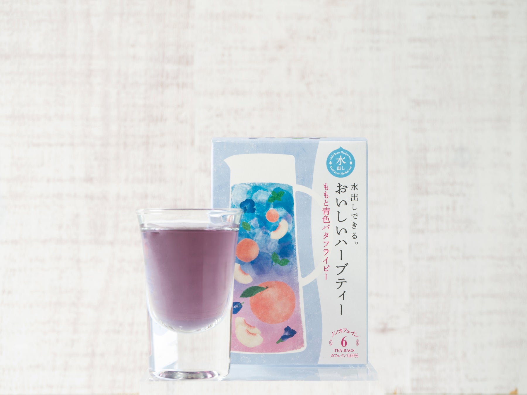 「水出しできる。おいしいハーブティー ももと青色バタフライピー」
