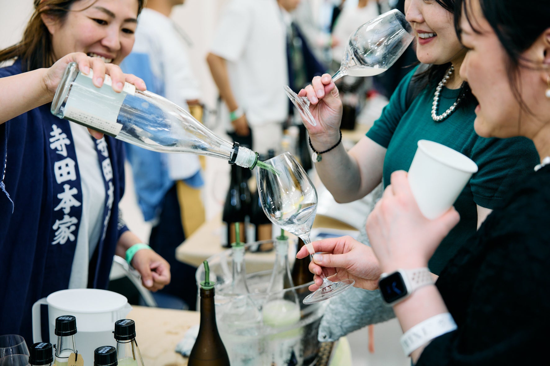 昨年よりもぐんと参加生産者が増えた、RAW WINE TOKYOならではの国産コーナーも常に来場者の足が絶えない人気エリアとなりました。今回は、日本のワイナリー11軒と日本酒の酒蔵6軒がずらりと並ぶ圧巻のラインアップ。さらに、日本の有機日本酒や自然酒を応援するプロジェクト団体のビオサケ(オーガニックヴィレッジジャパン)や、国内でも希少とされるオーガニック日本酒を150種類以上も取り扱いする人気店の恵比寿 松田酒店も参加することで、バリエーション豊かなナチュラルサケが大集合したのも特筆すべきポイントに。日本で行われるさまざまな日本酒フェスのなかでも、ナチュラルサケだけを全国から集めたイベントは唯一無二と言える規模でした。