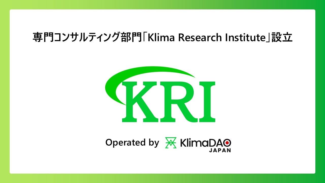 KlimaDAO JAPAN株式会社(代表取締役:濱田 翔平、本社:東京都中央区)は、近年急速に高まる企業の気候変動対策ニーズに応えるため、Web3技術を活用した気候変動対策の専門コンサルティング部門「Klima Research Institute(KRI)」を設立いたしましたので、お知らせいたします。特に、ブロックチェーン技術を活用した新しい取り組みへの関心が高まる中、KRIは、Web3技術とカーボンクレジットを組み合わせた独自のソリューションにより、効率的かつ透明性の高い気候変動対策の実現を支援してまいります。