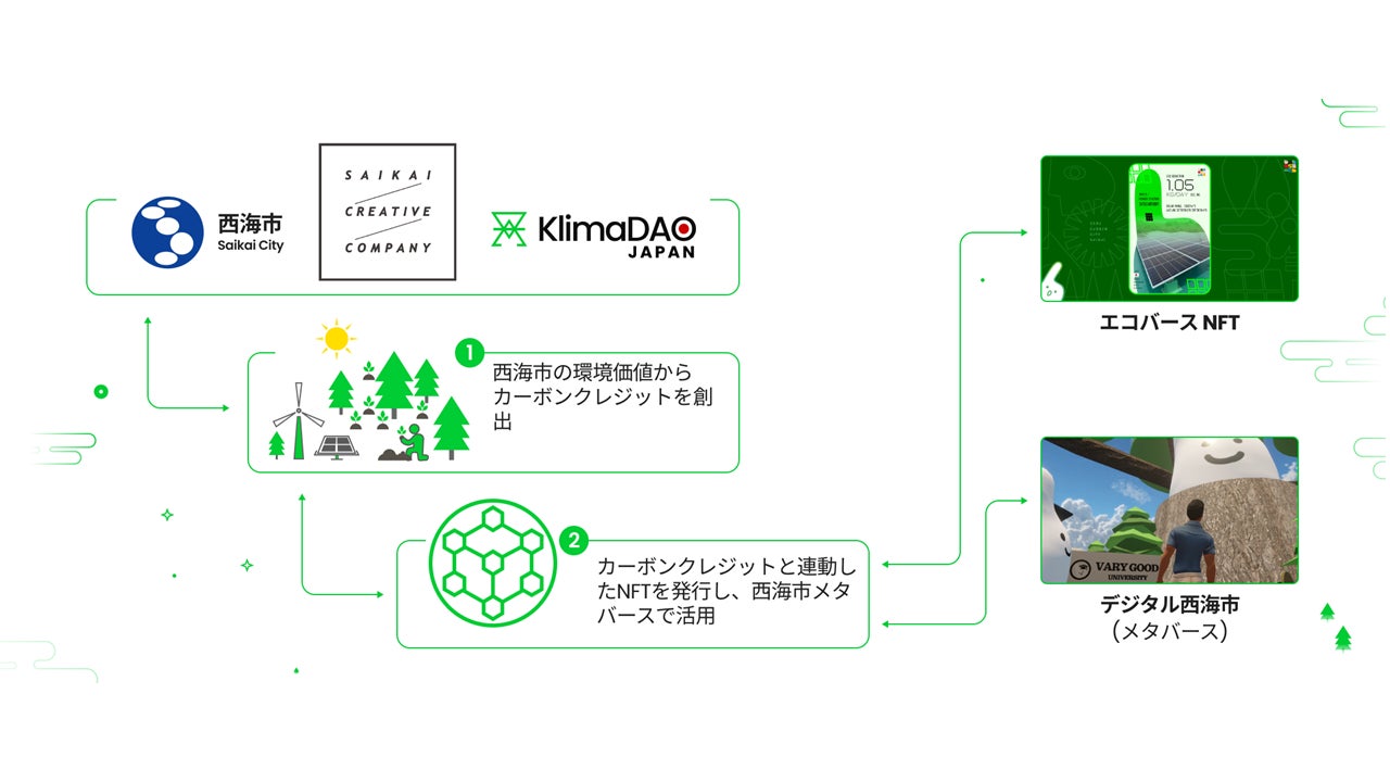 長崎県西海市および西海クリエイティブカンパニー様との取り組みでは、地域の環境価値とNFTを連携させた独自のトークンエコノミーを設計。地域資源を活用した新しい形の環境価値創出と地域経済の活性化の実現を支援しました。