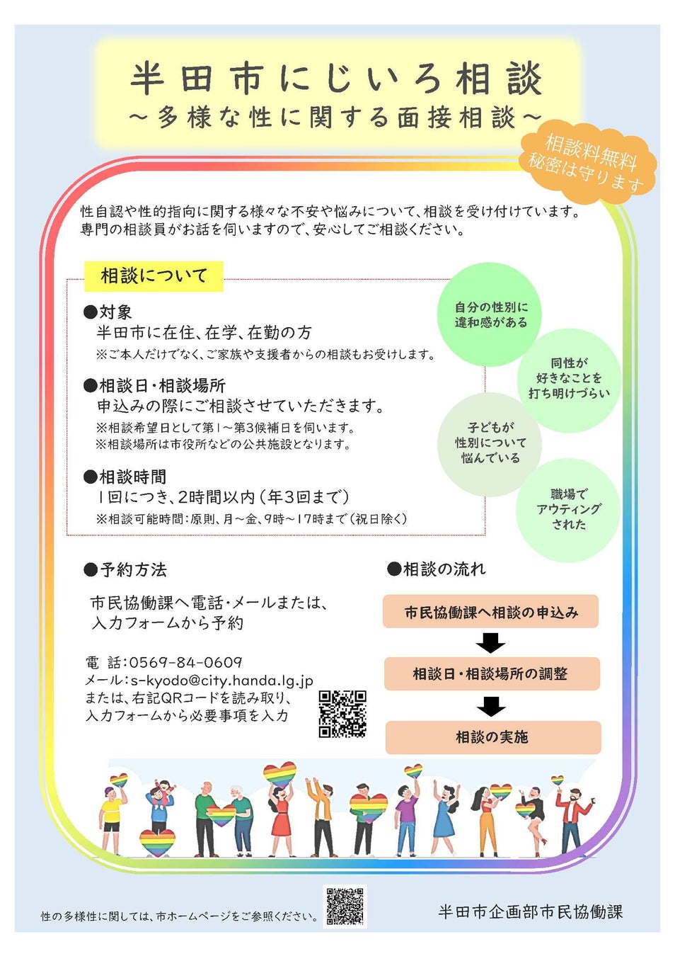 【愛知県半田市】(5月~)多様な性に関する面接相談「にじいろ相談」を開始します。