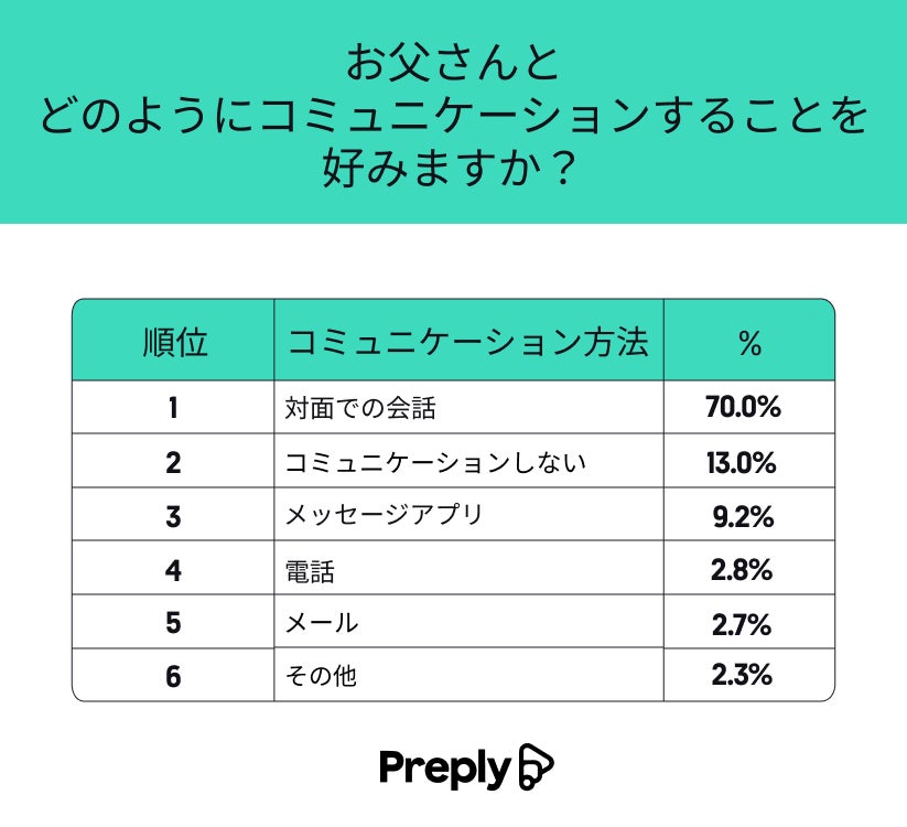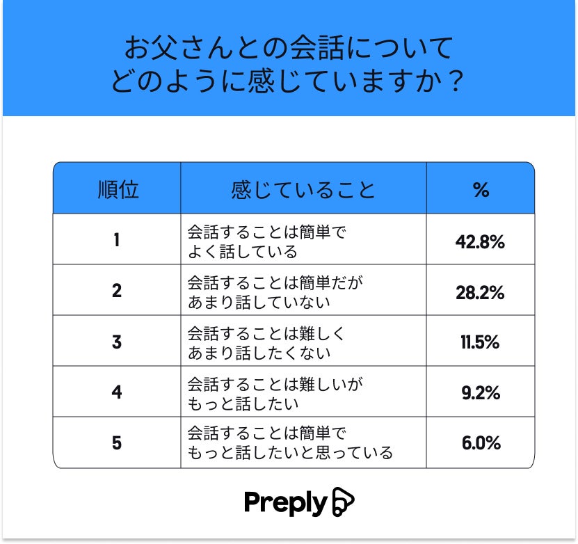 そこで、英会話個人レッスンや、韓国語個人レッスンを提供する、オンライン語学学習プラットフォーム Preply(プレプリー)は、父親と子供(中高生)間のコミュニケーションについて調査を行いました。