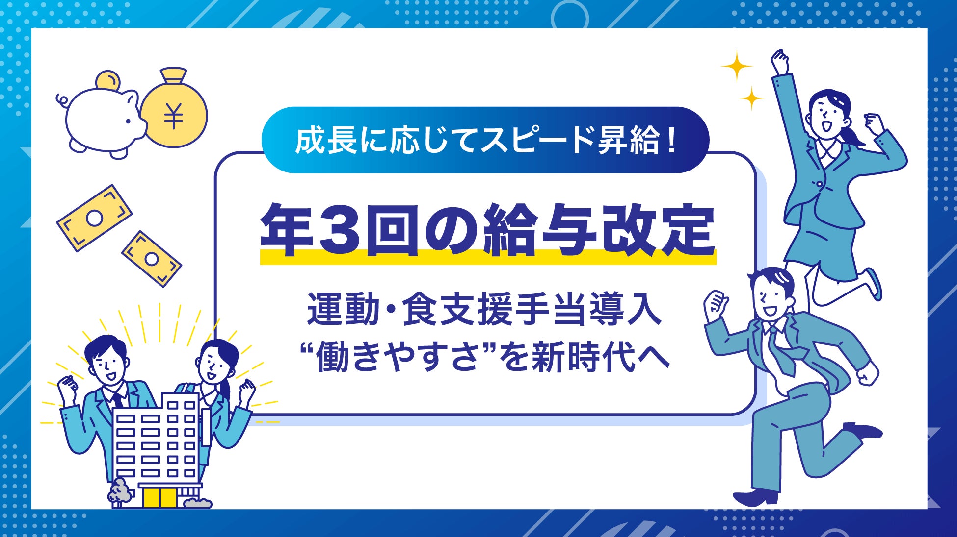 成長に応じてスピード昇給!年3回の給与改定&運動・食支援手当で“働きやすさ”を新時代へ