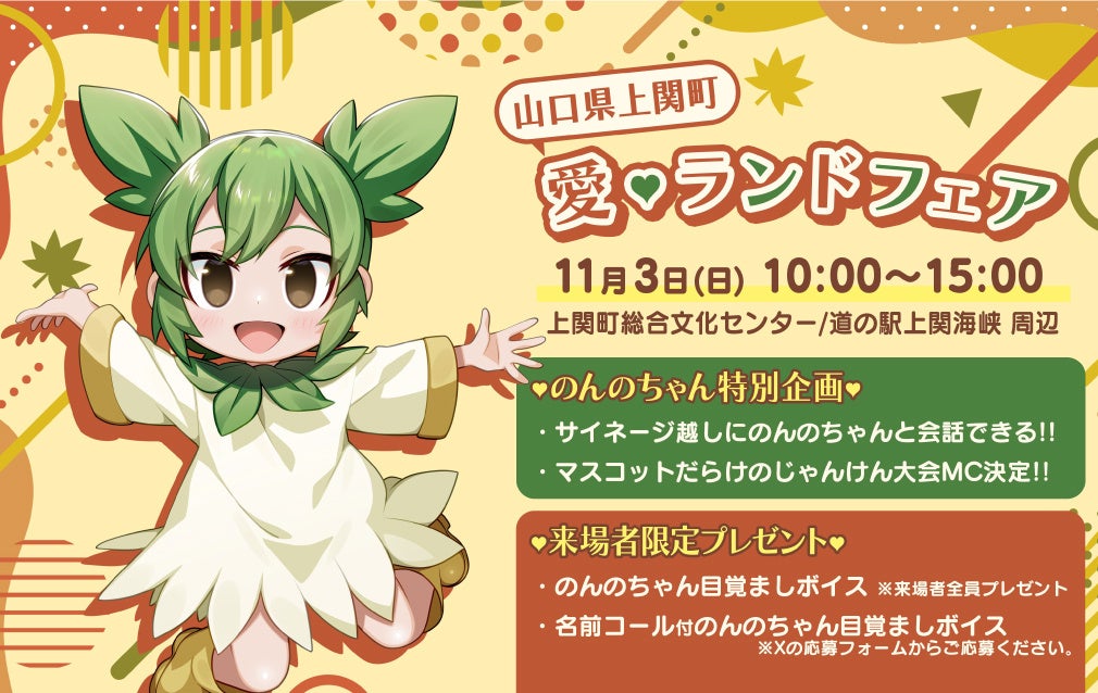 今回の愛・ランドフェアでは、のんのちゃんのブースや公式X連動企画を行います。