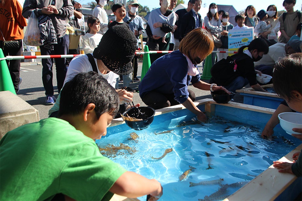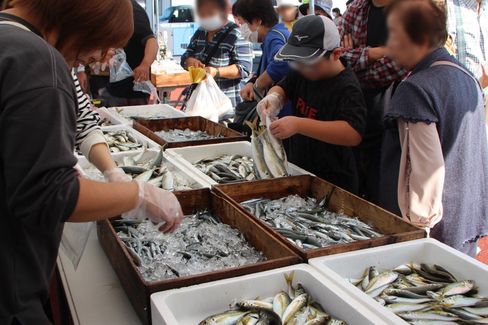 すいぐん市では、地元漁師が早朝から漁をしてきた新鮮な魚が並び、お得な価格でGETできます。普段お目にかかれない魚や、お店で買えないような丸々1匹の魚などが並ぶことも(漁果次第で内容が変わります)。値段を決めるのは「お客さん」です。ぜひ参加して、競り市を体験してみてください。同ブースで鮮魚詰め放題も行っています。