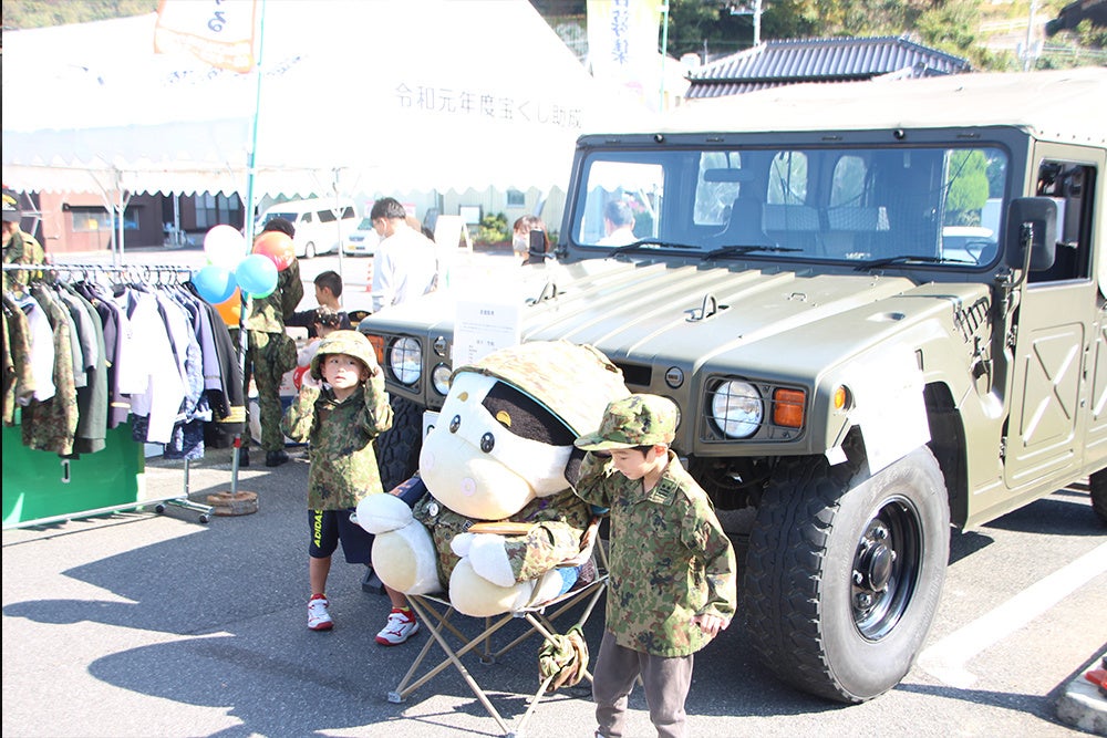 上関車海老天丼やたい焼き、海峡寿司まつりなどの食品ブースのほか、陸上自衛隊の高機動車・消防署の消防ポンプ車の車両展示と制服試着体験、レノファ山口FCとのコラボブース(レノ丸塗り絵など)、近隣市町のPRブースなどが出店されます。