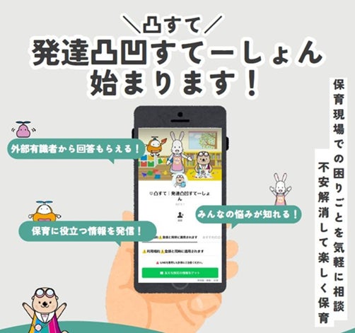 現場の保育士が子どもの発達に迷ったときにすぐ相談できる**「凸(でこ)ステ」を設置。本社と有識者が連携して、現場の声に応える体制を整えています。