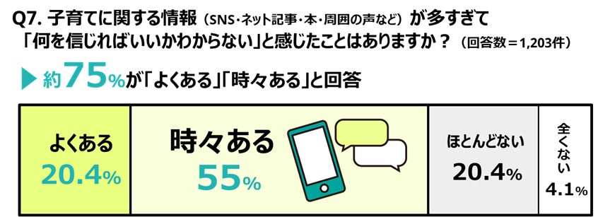 実際に、「子育てに関する情報(SNS・ネット・周囲の声など)が多すぎて何を信じればいいかわからないと感じたことはあるか?」という質問では、「よくある」「時々ある」と回答した保護者が全体の約75%に上りました。「他の家庭の成功体験を見て焦る」「誰の言葉を信じたらいいかわからない」など、“情報過多”そのものが不安を生む構造が浮かび上がっています。