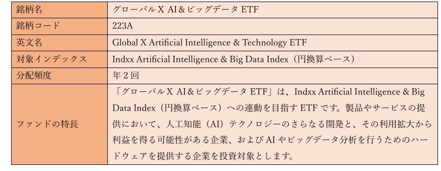 「グローバルX AI&ビッグデータETF」(223A)の商品詳細はこちら |