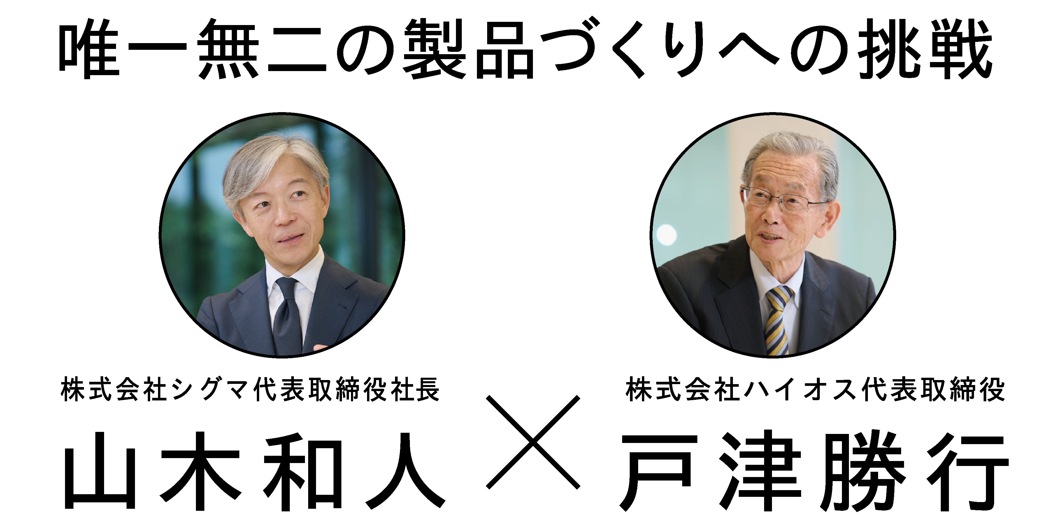 挑戦を続けるシグマ社長山木和人とハイオス社長戸津勝行がモノづくりに懸ける思いを語りあった。