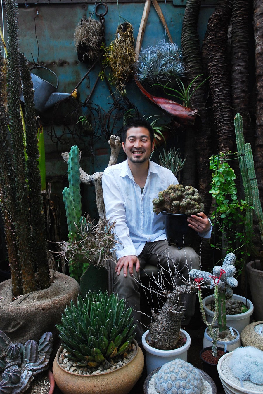 1976年、広島生まれ。世界中を旅する暮らしをしていた20代の頃、旅先で訪れたパリで、フラワーアーティストがセレクトショップの空間演出を手掛ける様子に感動。帰国後、生花と観葉植物による空間デザインに取り組むようになる。数年がたち、画一的な花や植物での表現に限界を感じ始めていた頃、ある世界的アートコレクターと出会い、納品後に傷ついた植物を見て発した彼の一言、「闘う植物は美しい」に衝撃を受ける。以来、植物選びの基準を、整った美しさから、『いい顔』をしているかどうかに変える。独自の視点で植物を捉え、美しさを見出した一点物の植物を扱うことを決心し、2012年、独自の美しさを提案する植物屋「 叢 - Qusamura 」をオープンした。
