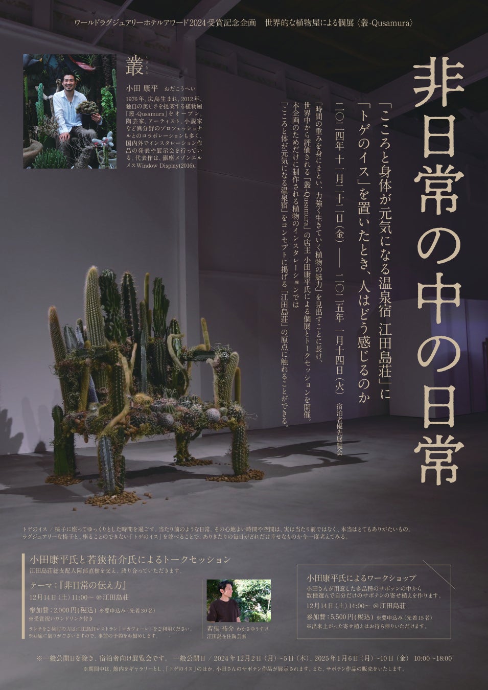 〈非日常の中の日常〉世界的な植物屋『叢-Qusamura』による個展開催。会場はWorld Luxury Hotel Awards 2024 世界最高位を受賞した江田島荘。