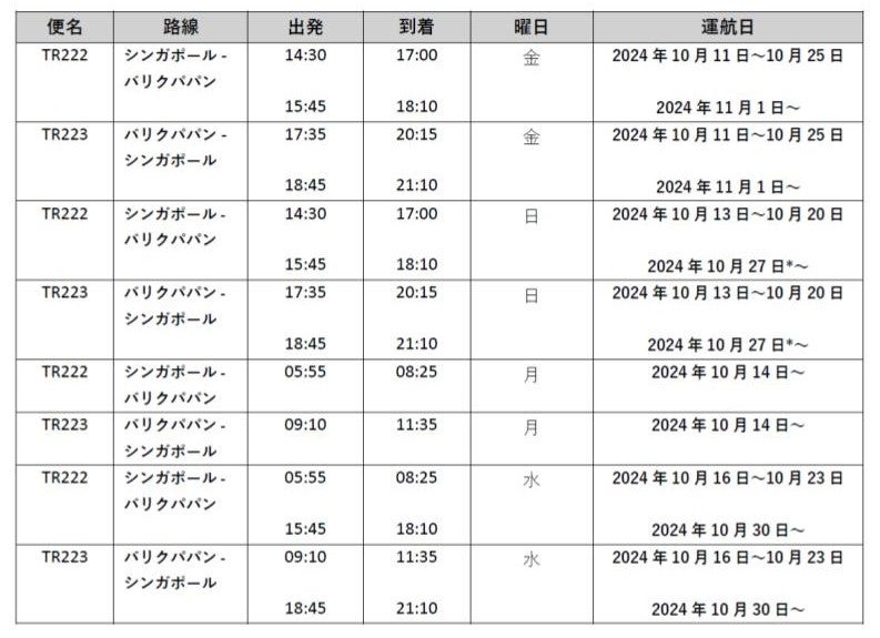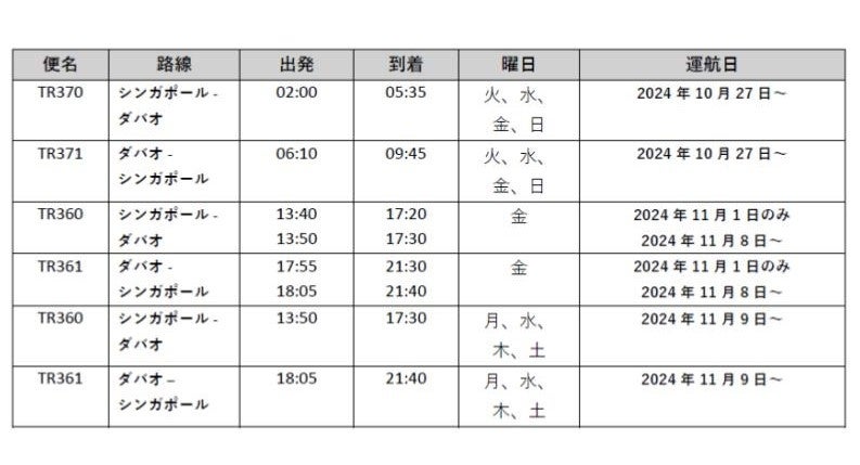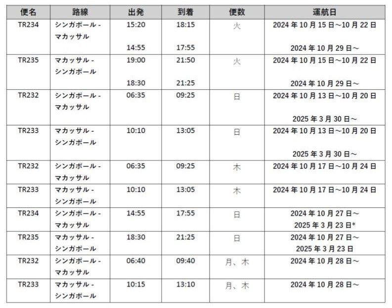 既存機材による就航地と合わせ、スクートは2024年10月までにインドネシアに週78便、マレーシアに週115便、2024年11月までにフィリピンに週37便、2024年12月までにラオスに週4便を運航予定です。スクートのネットワークは72都市に拡大し、東南アジア全域の地方都市への直行便が増えることによって、地域航空ハブとしてのシンガポールの地位を強化します。また、東南アジア地域の新たな就航地が加わることで、スクートはより多くの旅行者が冒険心を解き放ち、新たな旅に出るきっかけを提供します。